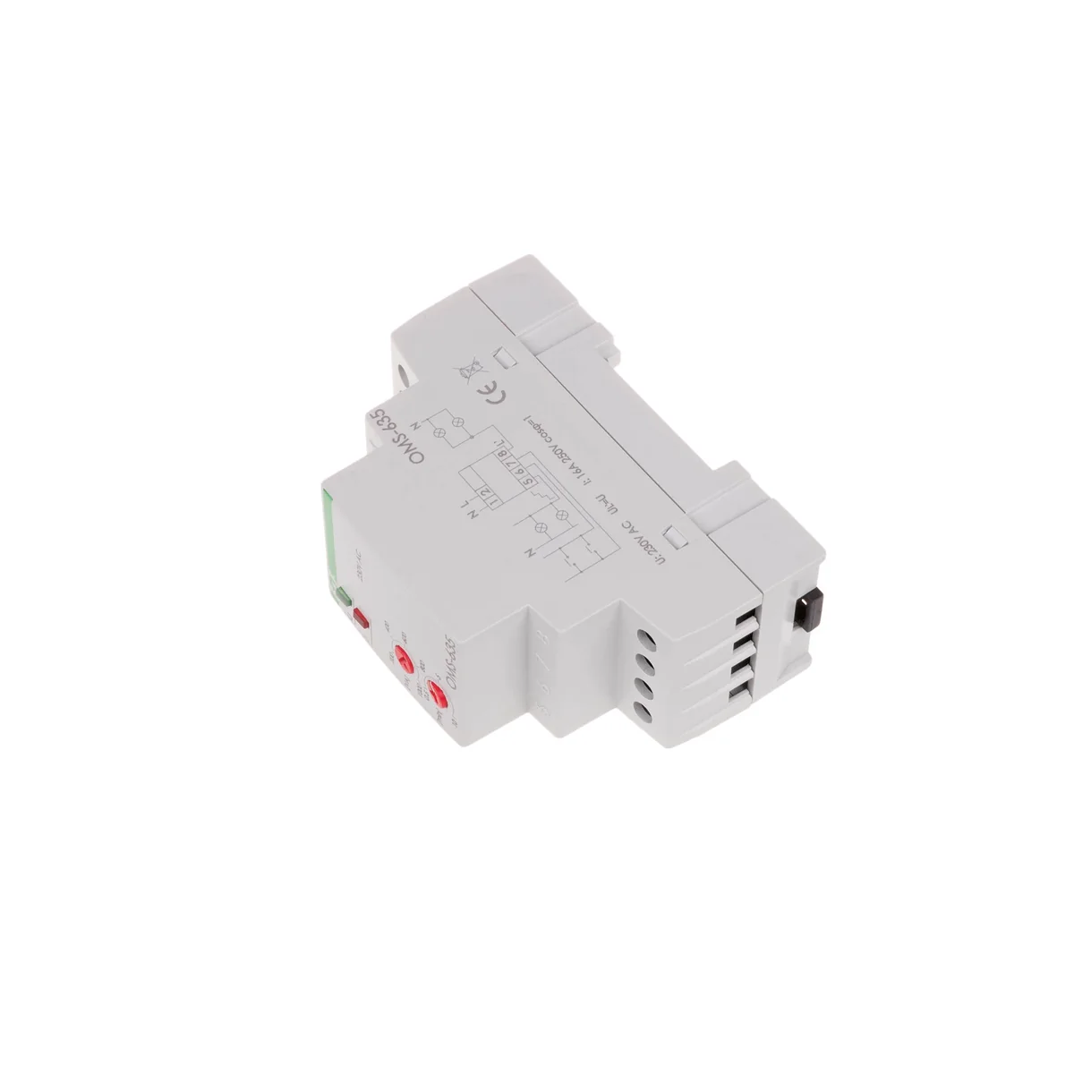 Ogranicznik poboru mocyOMS-635 służy do utrzymania włączonego oświetlenia korytarzy, klatek schodowych, lub innych obiektów przez określony czas, po upływie którego oświetlenie zostanie wyłączone automatycznie wraz z instalacji. W przypadku przekroczenia ustalonej wartości mocy pobieranej przez odbiorniki w tym obwodzie zasilania zostanie automatycznie odłączone.Działanie