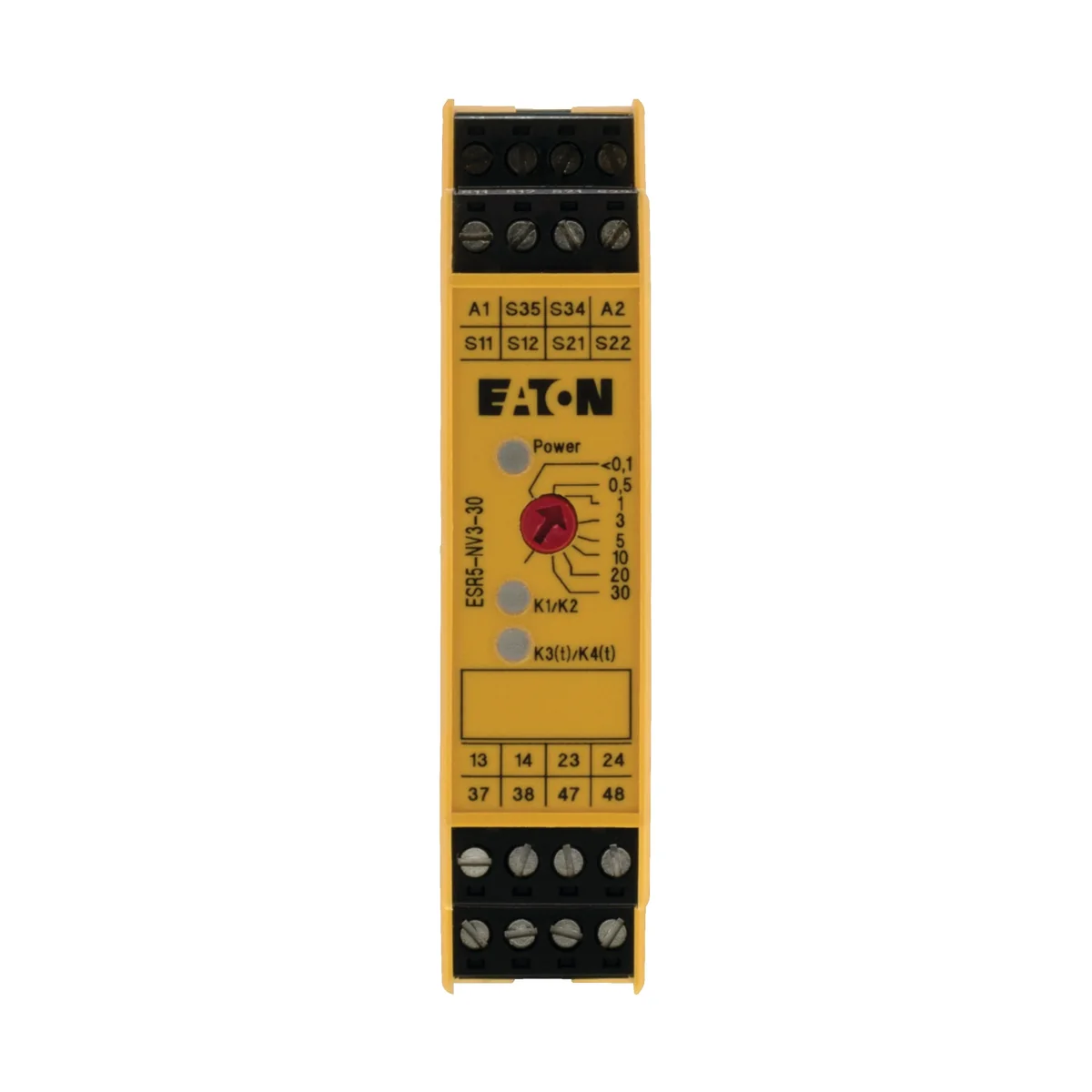 Elektroniczne przekaźniki bezpieczeństwa ESR5. Przekaźniki bezpieczeństwa do kontroli przycisków bezpieczeństwa, drzwi ochronnych i barier optycznych. (opóźnione odpadanie*) *Nadaje się do łączników krańcowych bezpieczeństwa z ryglem LS-S…MT-ZBZ.