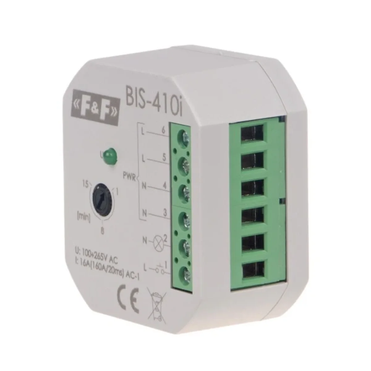 Elektroniczny bistabilny przekaźnik impulsowy, umożliwia załączenie oświetlenia lub innego urządzenia z kilku różnych punktów za pomocą równolegle połączonych przycisków sterujących