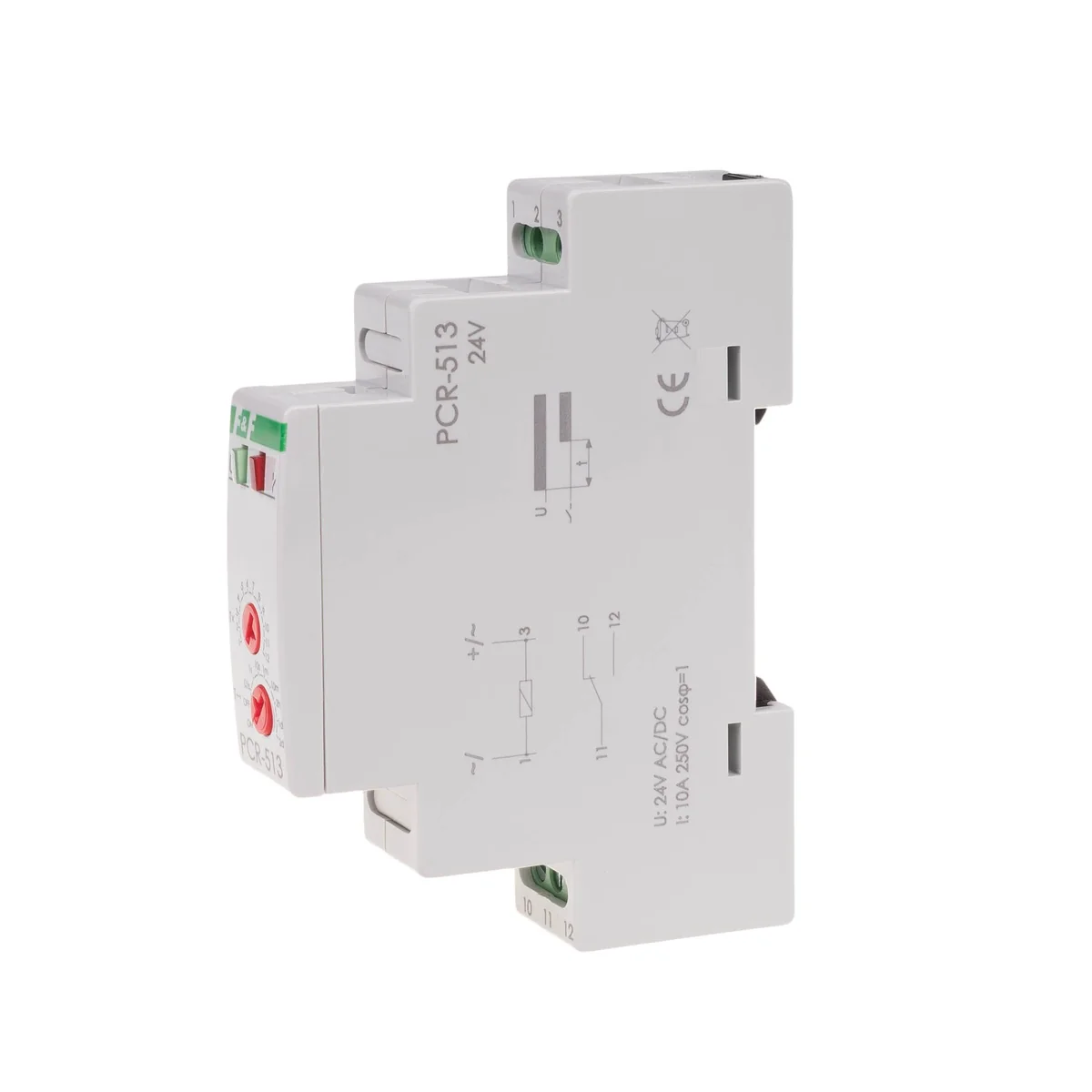 Po podaniu napięcia zasilającego styk pozostaje w pozycji 11-10 i następuje odmierzanie nastawionego czasu pracy. Po odmierzeniu czasu następuje przełączenie styku w pozycję 11-12. Ponowna realizacja trybu pracy przekaźnika możliwa jest po odłączeniu napięcia zasilającego i ponownym jego załączeniu. Uwaga!