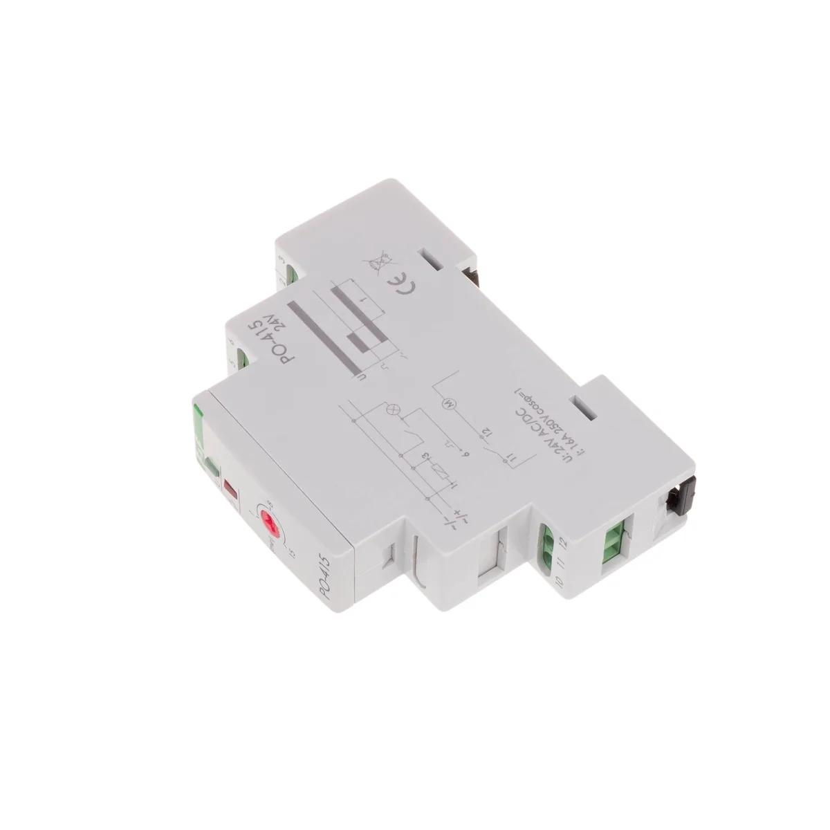 Podanie napięcia sterującego S na przekaźnik powoduje jego zadziałanie i załączenie napięcia na sterowanym odbiorniku. Po zaniku napięcia sterującego działanie odbiornika jest podtrzymywane przez czas podtrzymania t (nastawiany potencjometrem). Po czasie t wyłączenie sterowanego odbiornika nastąpi automatycznie. W przypadku ponownego podania napięcia sterującego S przed upływem nastawionego czasu przekaźnik realizuje swoją funkcje pracy od początku.