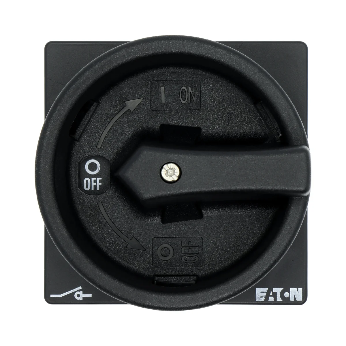 Rozłącznik On/Off In=25A P=13kW. Z czarnym pokrętłem z blokowaniem na kłódkę. Zamykane w położeniu 0