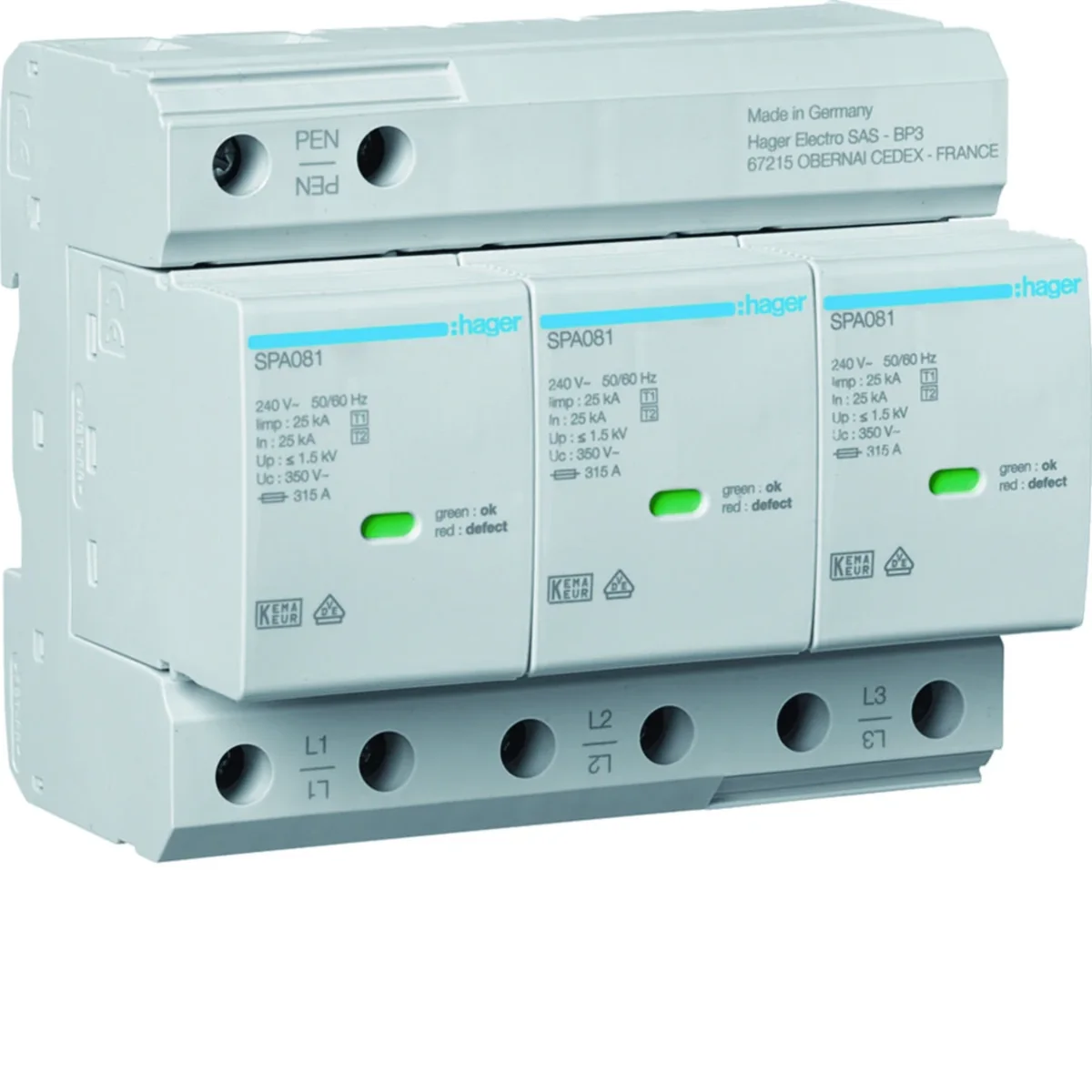 SPD Ogranicznik przepięć iskiernikowy kombinowany T1+T2 3P TN-C 75kA 1,5kV