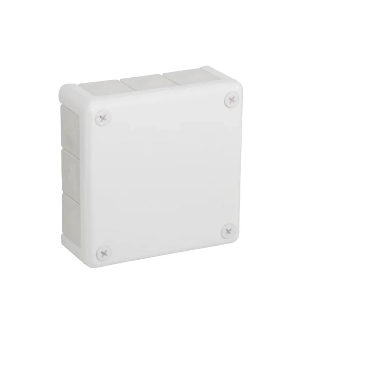Puszka „110” natynkowa, w rozmiarze 118x118x46mm, z zabezpieczeniem IP55, 12-wlotowa z dławnicami gumowymi (bezgwintowymi). Jest wyposażona w dekiel na 4 wkręty. W kolorze białym.