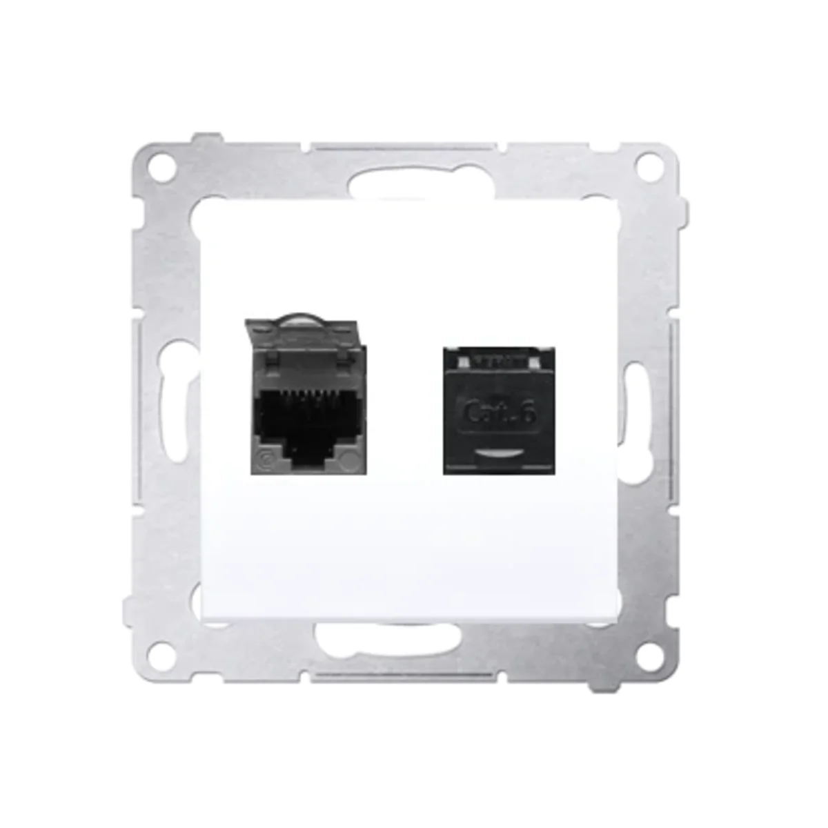 Gniazdo komputerowe podwójne RJ45 kategoria 6 z przesłoną przeciwkurzową (moduł) białe D62.01/11
