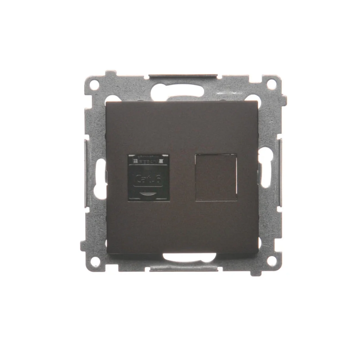 Gniazdo komputerowe pojedyncze RJ45 kategoria 6, z przesłoną przeciwkurzową, z serii SIMON 54. Wykonane z tworzywa sztucznego. Z zaciskiem przebijającym izolację.
