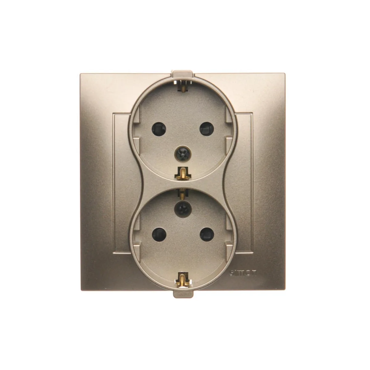 Gniazdo Schuko z przesłonami podwójne 16A, 250V, zaciski śrubowe, złoty (metalik) DGSZ2Z/44