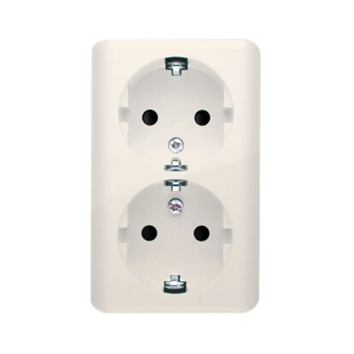 Gniazdo wtyczkowe podwójne z uziemieniem typu Schuko z przesłonami torów prądowych 16A 250V zaciski śrubowe kremowe EGSZ2NZ/41