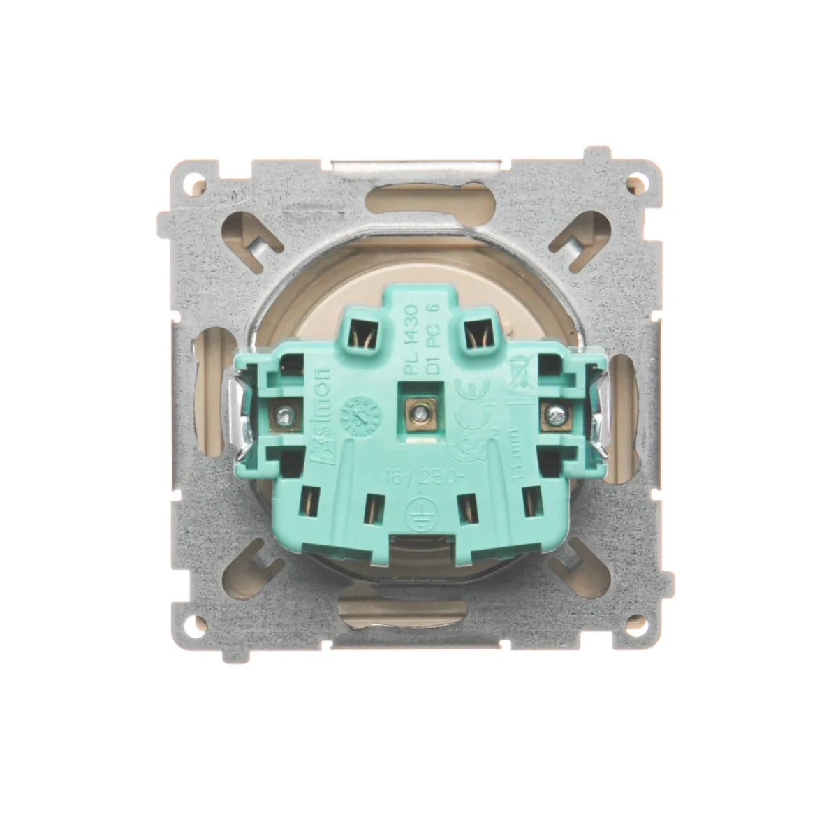 Gniazdo wtyczkowe pojedyncze z uziemieniem, w wersji IP44, z przesłonami torów prądowych.