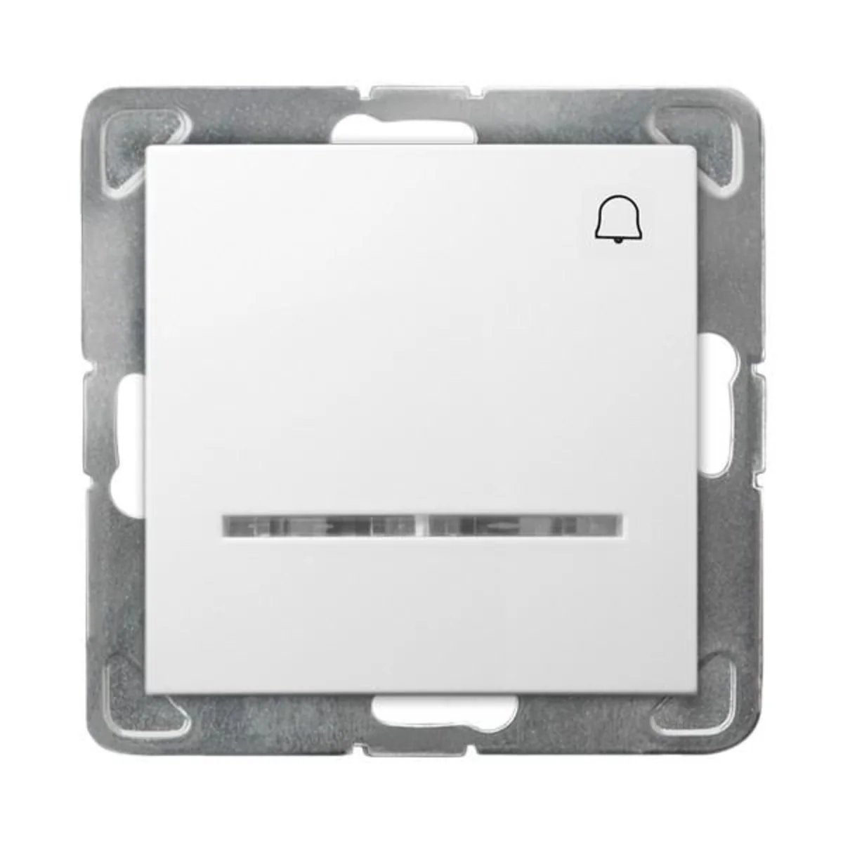 Łącznik zwierny "dzwonek" z podświetleniem, z serii Impresja, od producenta Ospel. Numer katalogowy produktu to ŁP-6YS/M/00. W kolorze białym.