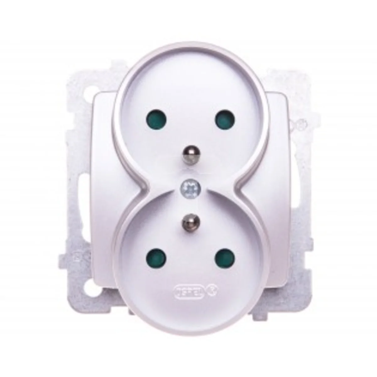 Gniazdo elektryczne podwójne, z uziemieniem, z przesłonami torów prądowych.