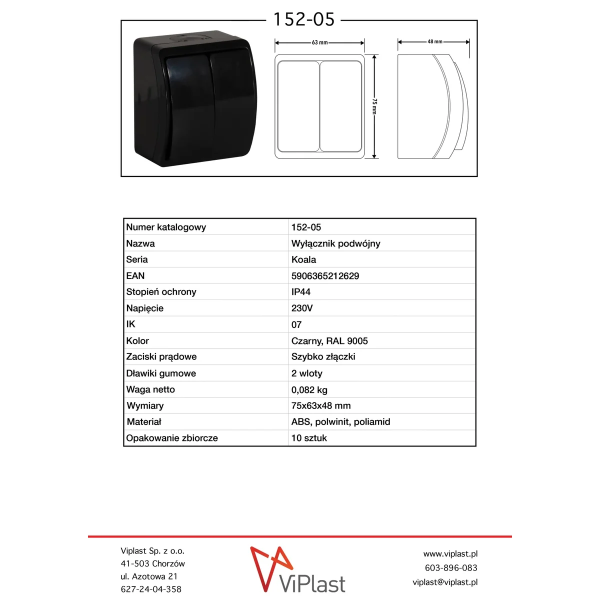 Łącznik świecznikowy natynkowy z serii Koala, od producenta ViPlast. Numer katalogowy produktu to 152-05.