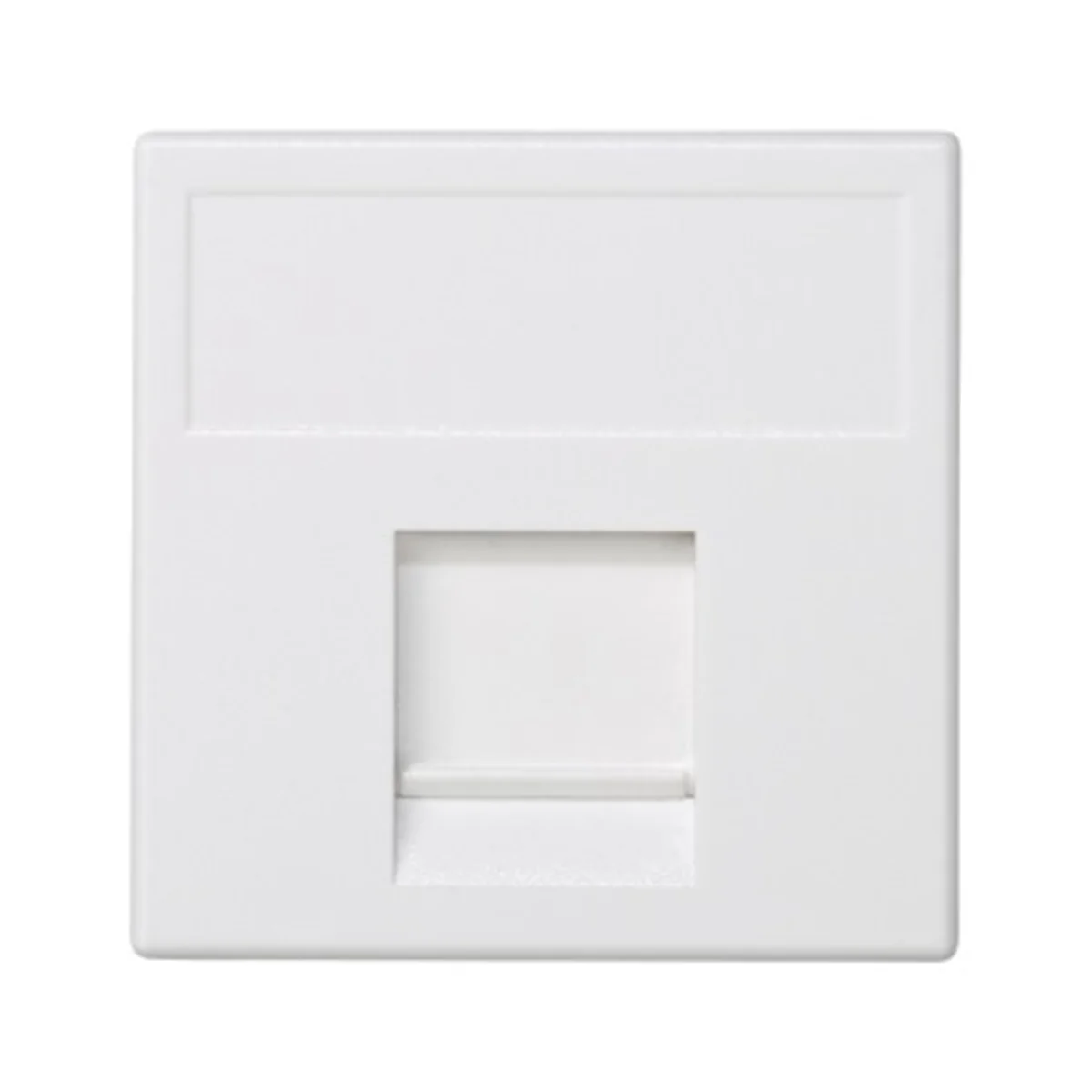 Plakietka teleinformatyczna K45 keystone pojedyncza płaska uniwersalna z osłoną, od producenta Kontakt Simon. Numer katalogowy produktu to K76/9.