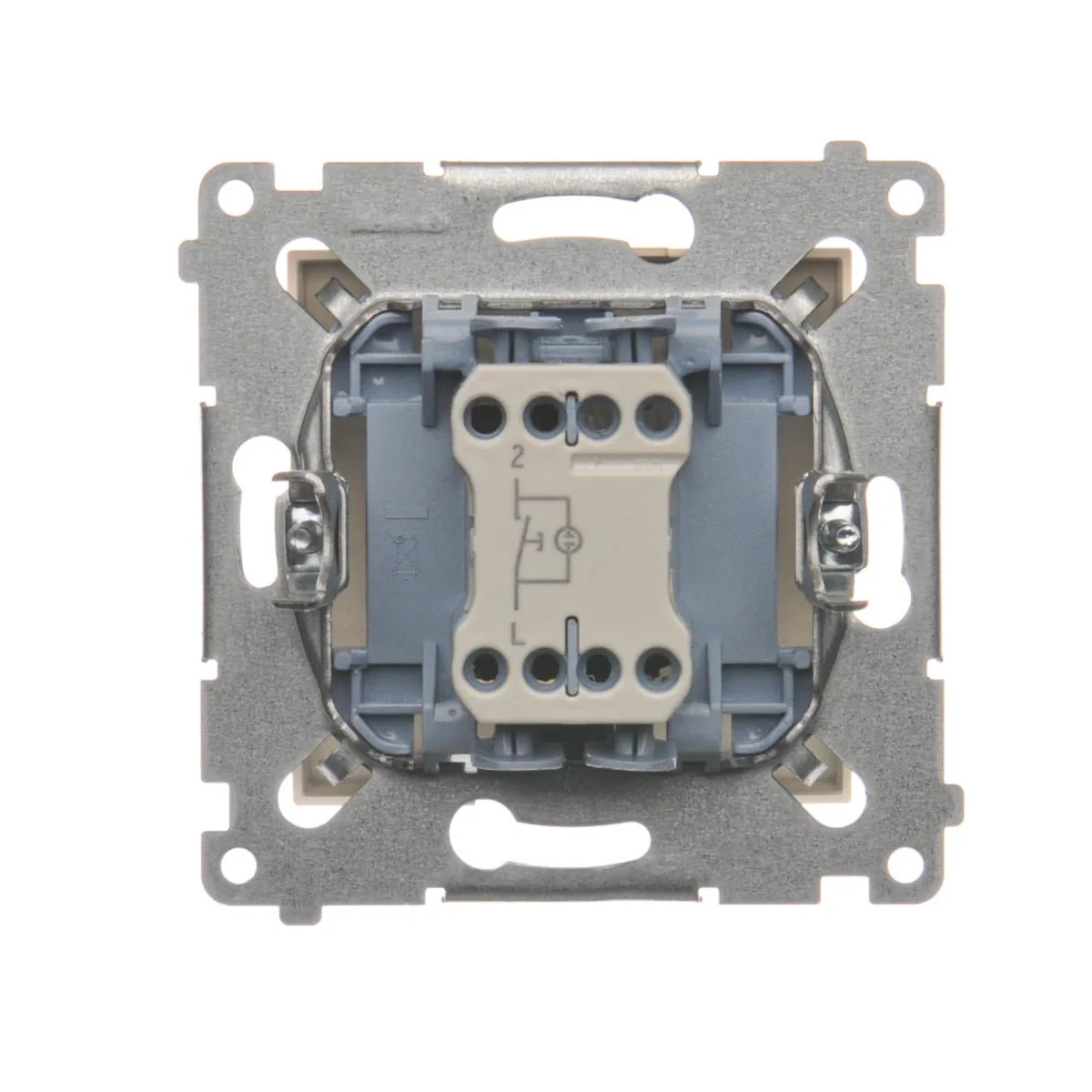 Przycisk "dzwonek" z podświetleniem, z serii Simon 54, od producenta Kontakt Simon. Numer katalogowy produktu to DD1L.01/41. W kolorze kremowym.
