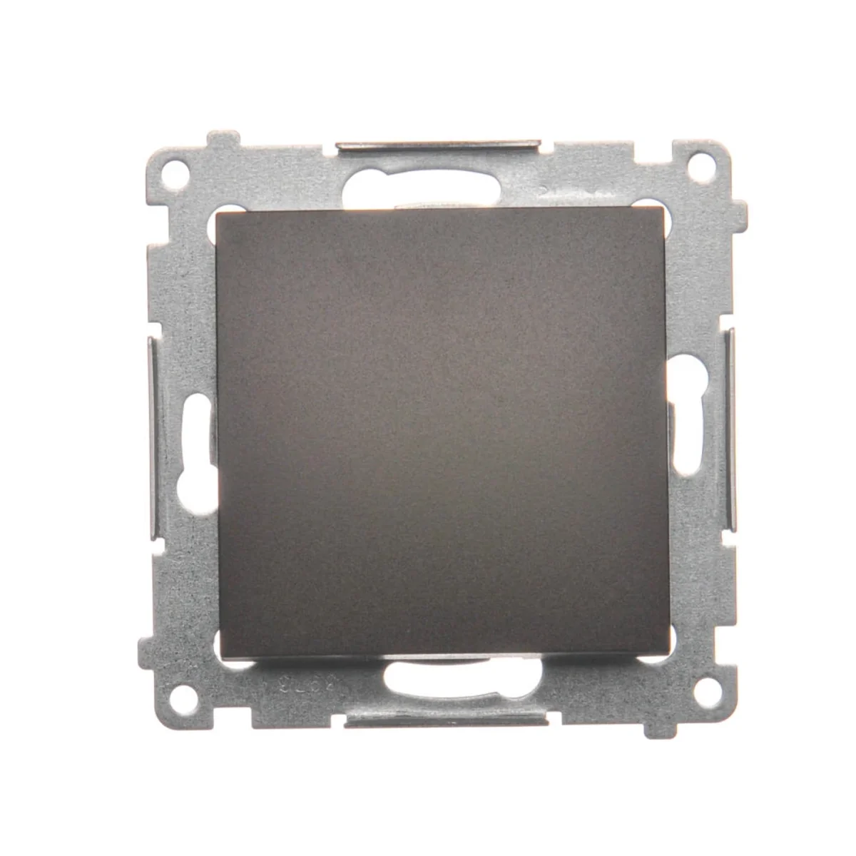 Przycisk zwierny pojedynczy z serii Simon 54, od producenta Kontakt Simon. Numer katalogowy produktu to DP1A.01/46. W kolorze brąz mat, metalizowanym.