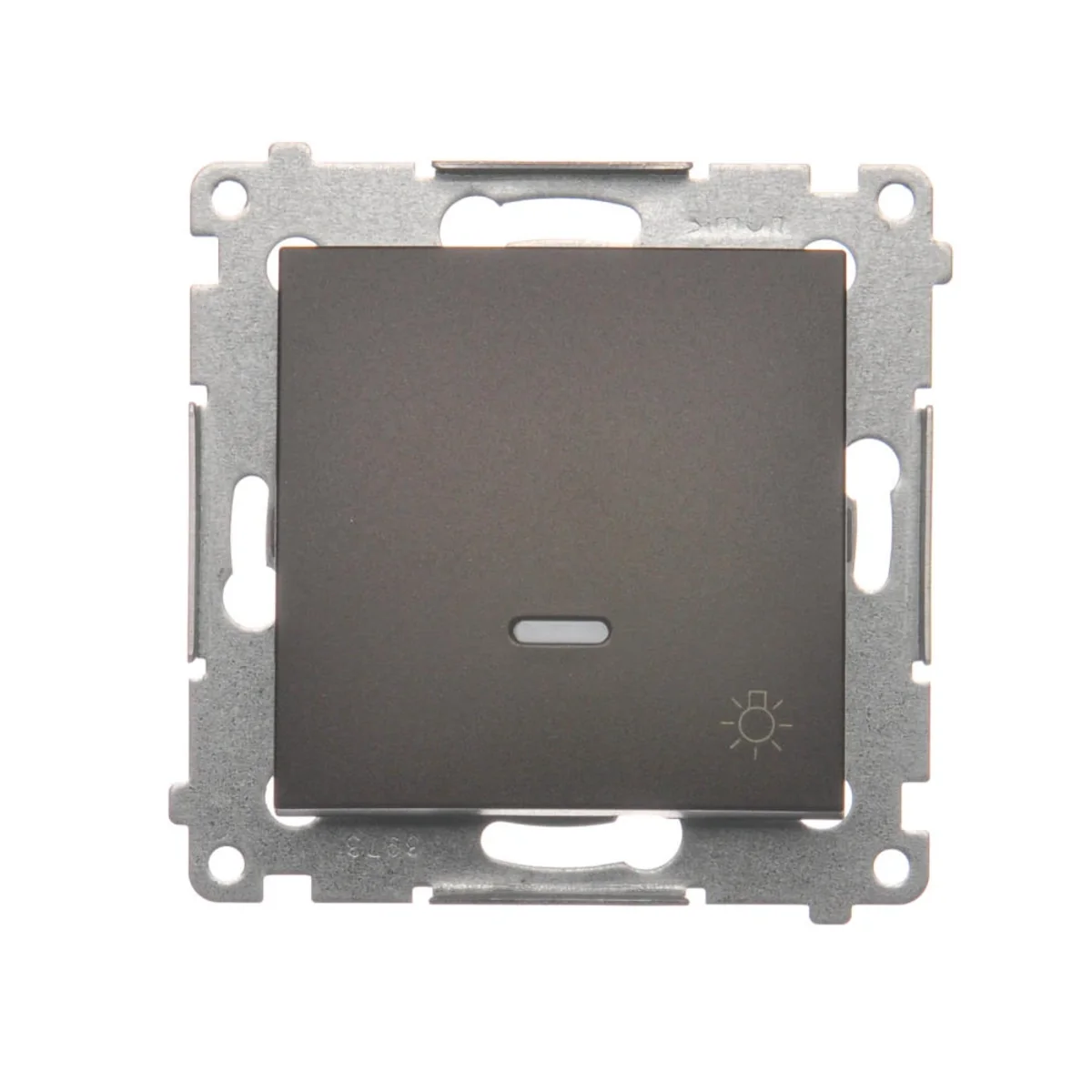 Przycisk "światło" z podświetleniem, z serii Simon 54, od producenta Kontakt Simon. Numer katalogowy produktu to DS1AL.01/46. W kolorze brąz mat, metalizowanym.