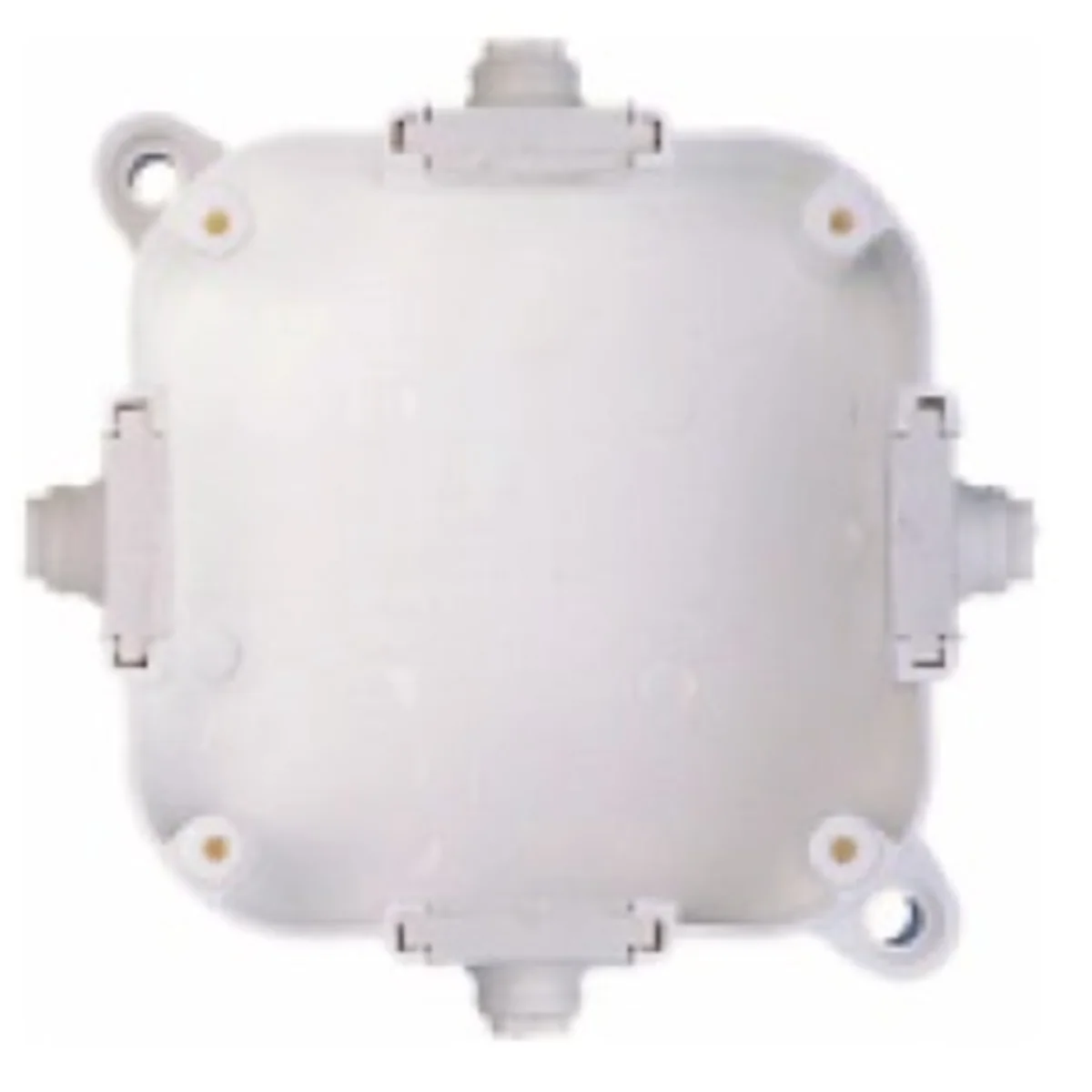 Puszka natynkowa w rozmiarze 88x88x40mm, z zabezpieczeniem IP44, 4-wlotowa z osłabieniami; można zastosować dławnice gwintowe. Jest wyposażona w dekiel na 4 wkręty oraz zaciski 1-4mm². W kolorze białym.