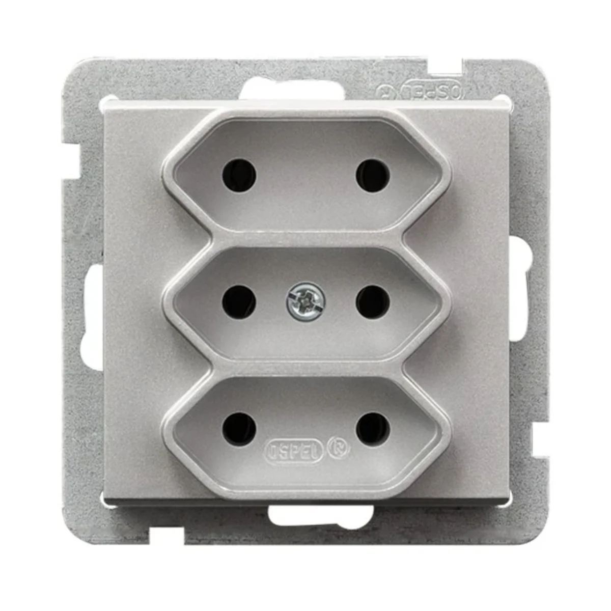 Gniazdo elektryczne na trzy płaskie wtyczki. Do wyposażenia w ramkę.