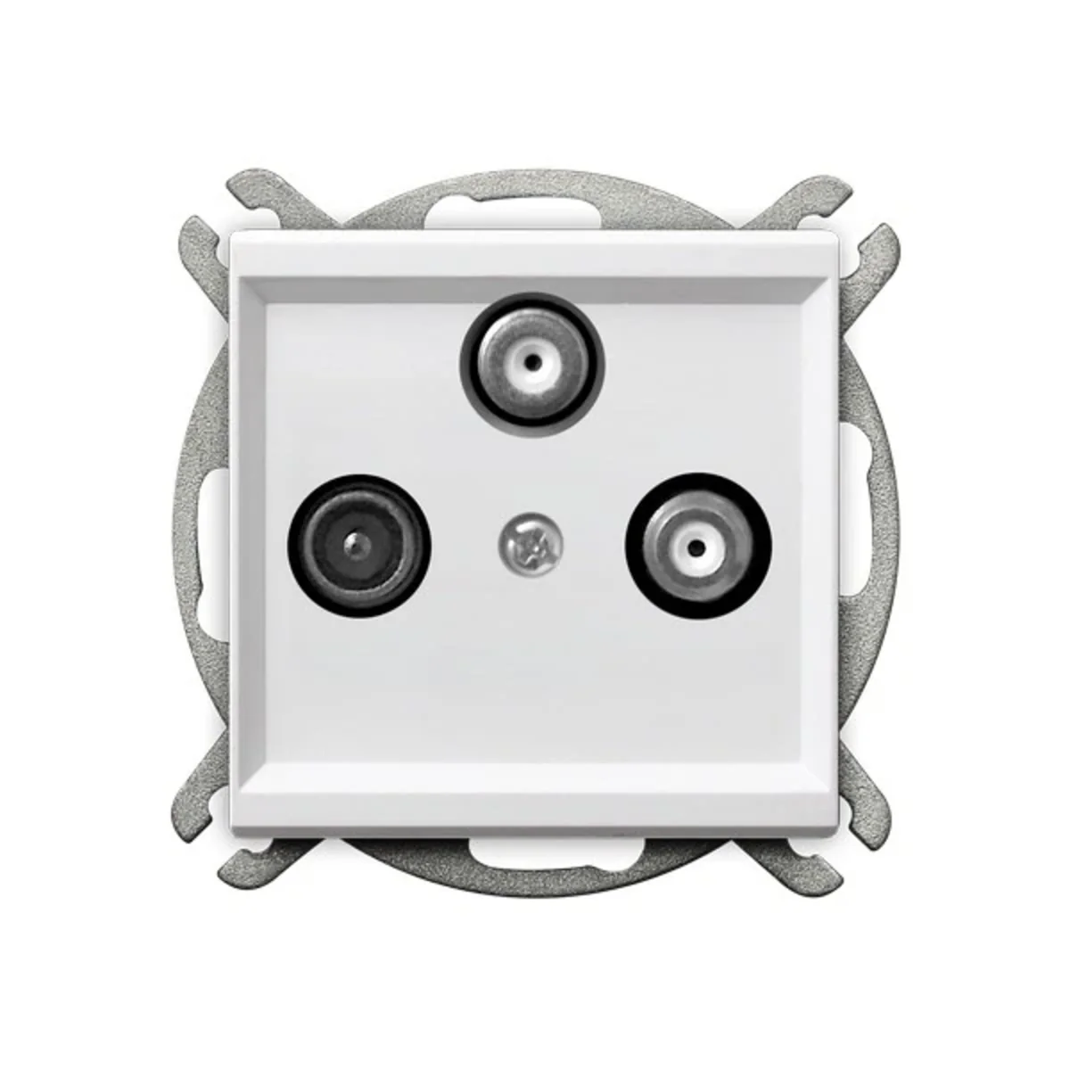 Gniazdo antenowe RTV z dwoma wyjściami SAT. Do wyposażenia w ramkę.