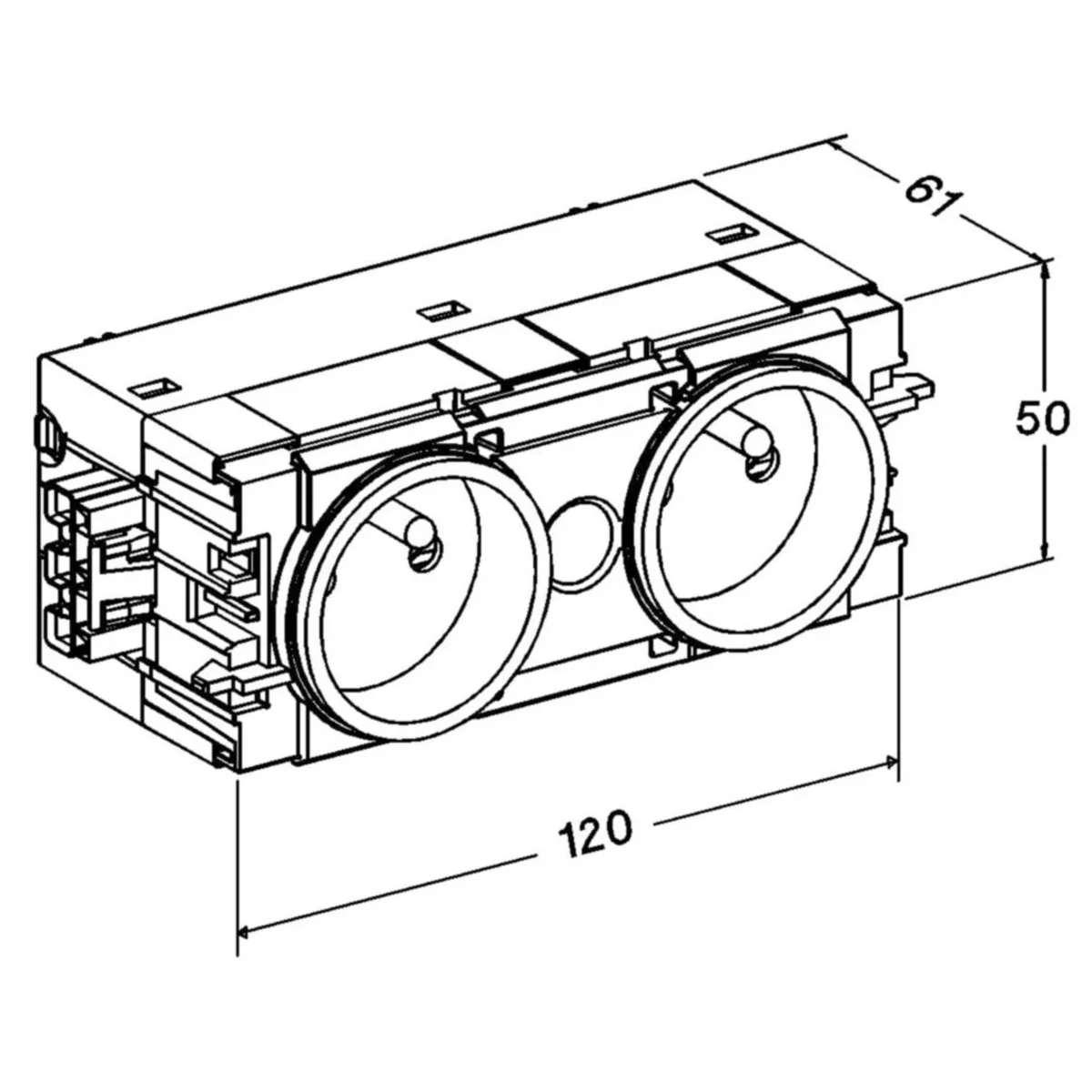 Gniazdo elektryczne kanałowe z serii tehalit.WA, od producenta Hager. Numer katalogowy produktu to GE20103020.