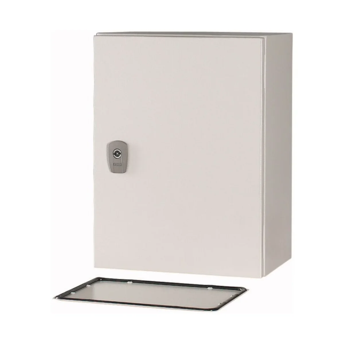 Obudowy uniwersalne CS. Obudowy posiadają w komplecie: płytę montażową, zamek, drzwi, pełną płytę zaślepiającą Istnieje możliwość zamówienia rozdzielnicy w innym kolorze i wymiarach (na zapytanie).