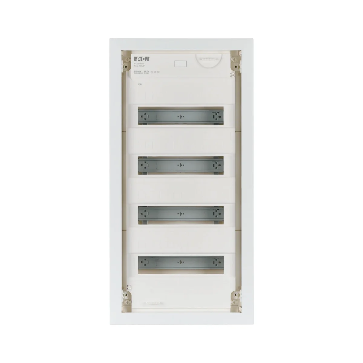 Rozdzielnica elektryczna KLV-48UPS-SF podtynkowa metalowa z drzwiami pełnymi jest elementem sieci elektrycznej, zawiera urządzenia i podzespoły służące do: łączenia, przerywania, sterowania, ochrony, pomiaru i regulacji obwodów elektrycznych, silników i mechanizmów. Rozdzielnice serii KLV posiadają stabilną konstrukcję kasety podtynkowej ze zintegrowaną poziomicą i można je montować w ścianach murowanych jak również gipsowych. W zestawie z rozdzielnicą znajdują się listwy zaciskowe N/PE. Cała seria KLV jest zgodna z normami IEC/EN 60670-24 i IEC/EN 62208 oraz IEC/EN 61439-3.