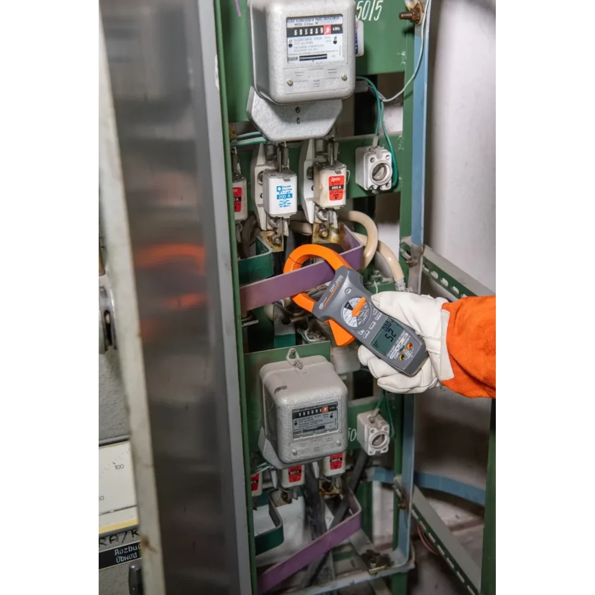 Uniwersalny miernik cęgowy, umożliwiający prowadzenie pomiarów prądu do 2000 A przy pomocy cęgów na przewodach o średnicy do 57 mm i szynoprzewodach do 70 x 18 mm.