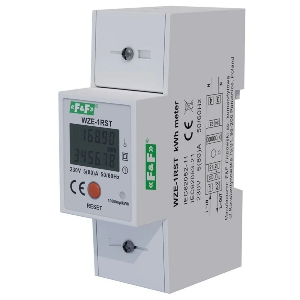 Jednofazowy licznik zużycia energii 45A z funkcją RESET WZE-1RST