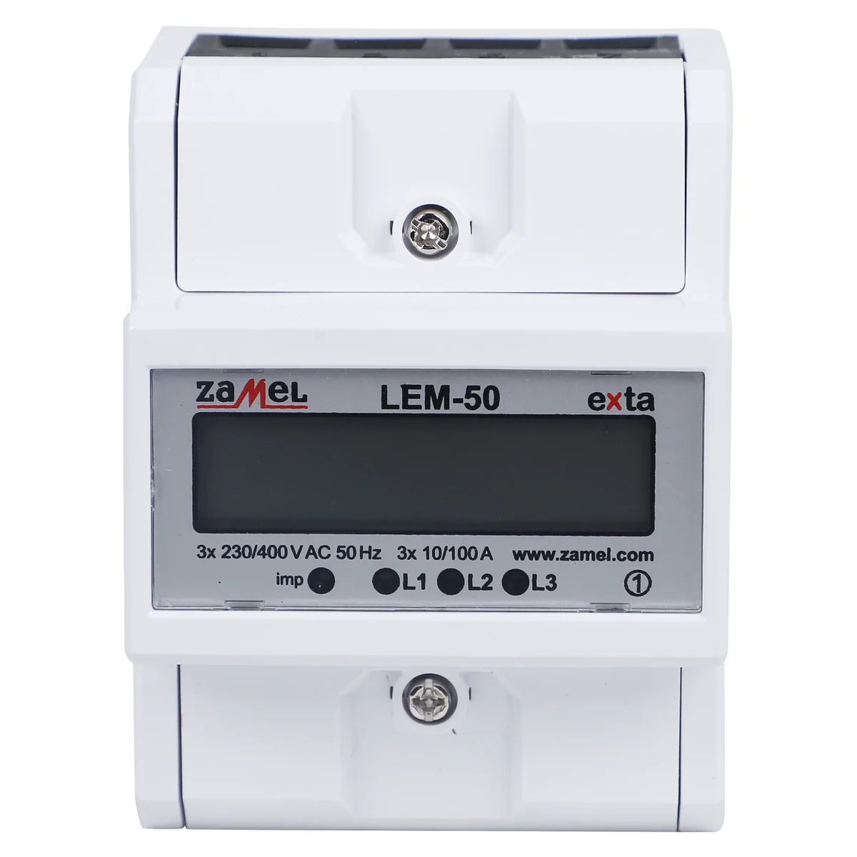 Licznik LEM-50 służy do monitorowania zużycia energii elektrycznej sieci trójfazowej w zastosowaniach domowych, komercyjnych i przemysłowych. Mierzy i wyświetla zużycie energii elektrycznej czynnej wyrażonej w kWh. Licznik z łatwością można zamontować na szynie TH-35 (DIN). Osłony umożliwiają zaplombowanie.