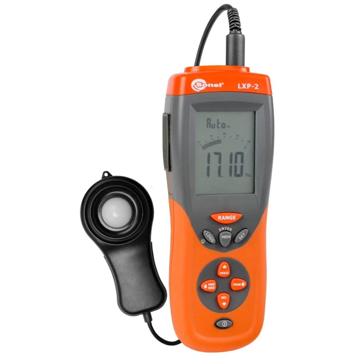 Luksomierz Sonel LXP-2 to model skierowany dla osób wykonujących podstawowe pomiary natężenia oświetlenia miejsc pracy wewnątrz i na zewnątrz (w luksach i stopokandelach). Urządzenie współpracuje z głowicą pomiarową LP-1 (klasa B), pozwalającą na wykonywanie wiarygodnych pomiarów. Niezintegrowana głowica eliminuje wpływ użytkownika na wynik pomiaru.