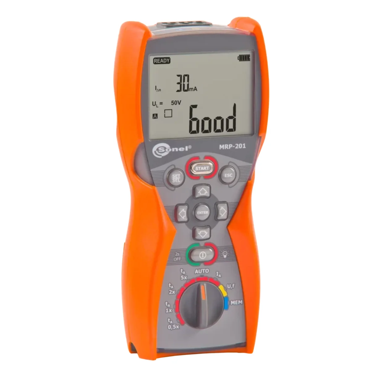Specjalistyczny MRP-201 przyrząd do pomiarów wszystkich rodzajów wyłączników róźnicowoprądowych – bezzwłocznych, krótkozwłocznych, selektywnych; typu AC, A oraz B. Pozwala na pomiar prądu zadziałania, czasu zadziałania w zależności od natężenia prądu różnicowego, rezystancji przewodu ochronnego oraz napięcia dotykowego. Pomiary mogą być wykonywane pojedynczo lub seriami w trybach automatycznych (wszystkie zadane pomiary dla danego przebiegu lub dla wszystkich przebiegów), również możliwy jest jednoczesny pomiar prądu i czasu zadziałania (przy jednym wyzwoleniu wyłącznika RCD).