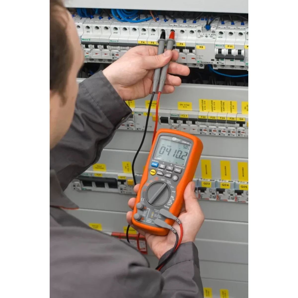 Wyjątkowo solidny i wszechstronny multimetr przemysłowy Sonel CMM-40 to przyrząd o rozbudowanych możliwościach pomiarowych przeznaczony do prac przemysłowych, serwisowych i nie tylko. Znajduje zastosowanie między innymi przy mierzeniu napięcia oraz prądu (stałe i przemienne TRUE RMS), ponadto przyrząd pozwala zmierzyć pojemność, częstotliwość, cykl roboczy (wypełnienie), ciągłość połączeń, rezystancję i oraz temperaturę. Dodatkowe funkcje takie jak automatyczna lub ręczna zmiana zakresów, funkcja HOLD, funkcja zatrzymania wartości szczytowej czy funkcja REL jeszcze bardziej poszerzają możliwości tego urządzenia.