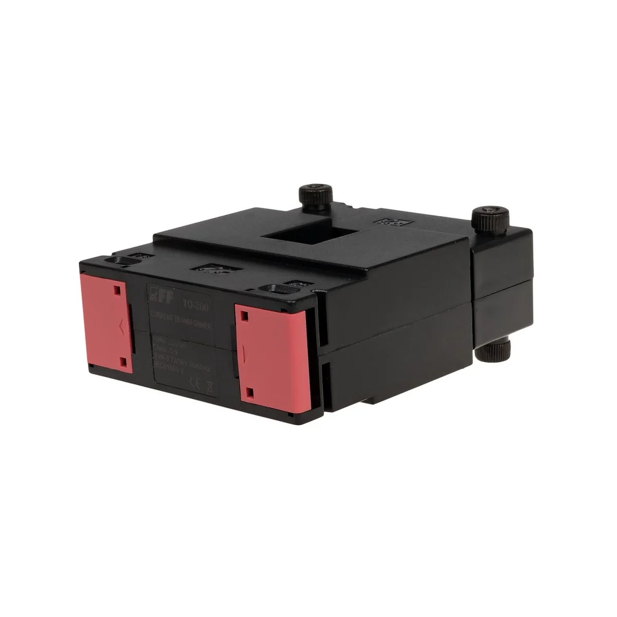 Przewód z mierzonym prądem przechodzi przez główny otwór przekładnika(P1/P2), co jest równoważne z jednym zwojem uzwojenia pierwotnego. Zaciski uzwojenia wtórnego S1 i S2 podłączone są do zacisków obwodu pomiarowego urzadzenia kontrolnego lub pomiarowego.