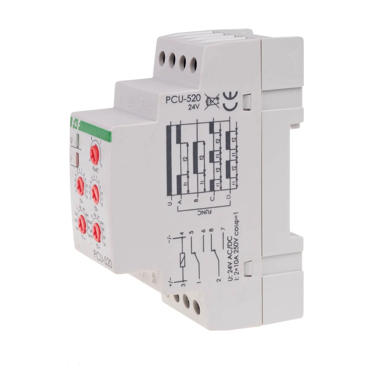 1-6, 2-7 на час t1. Після закінчення часу t1 контакти на деякий час повертаються в положення 1-5, 2-8 t2. Через час t2 контакти реле повертаються в положення 1-5, 2-8 на час t2. Через час t2 контакти реле повертаються в положення 1-6, 2-7 Повторне виконання режиму роботи реле можливе після відключення напруги живлення і повторного включення живлення, контакти залишаються в положенні 1-5, 2-8 для часу t1. Після закінчення часу t1 контакти в положенні 1-6, 2-7 на час t2. Через час t2 контакти реле повертаються в положення 1-5, 2-8. Повторне виконання режиму роботи реле можливе після відключення напруги живлення і повторного ввімкнення. інтервали час і перерва.