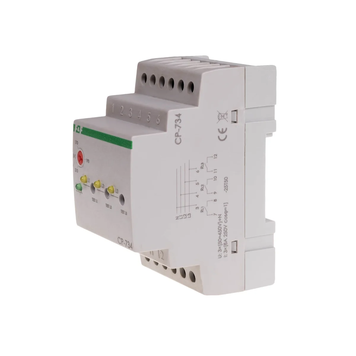 Реле напруги CP-734 використовується для контролю напруги трифазної мережі та захисту однофазного приймача від впливу напруги знизиться нижче заданого значення. Робота