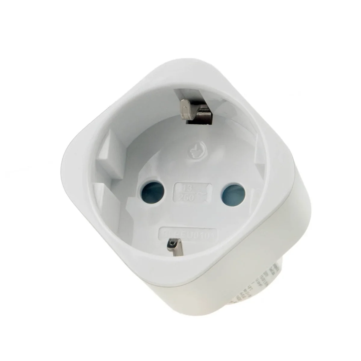 Релейний модуль у формі перехідник до розетки, призначений для управління ресивером 230В. Управління вилкою здійснюється через мобільний додаток і вручну за допомогою кнопки на корпусі. Діод, розташований у кнопці, вказує на робочий стан і навантаження (колір діода змінюється залежно від значення навантаження).
