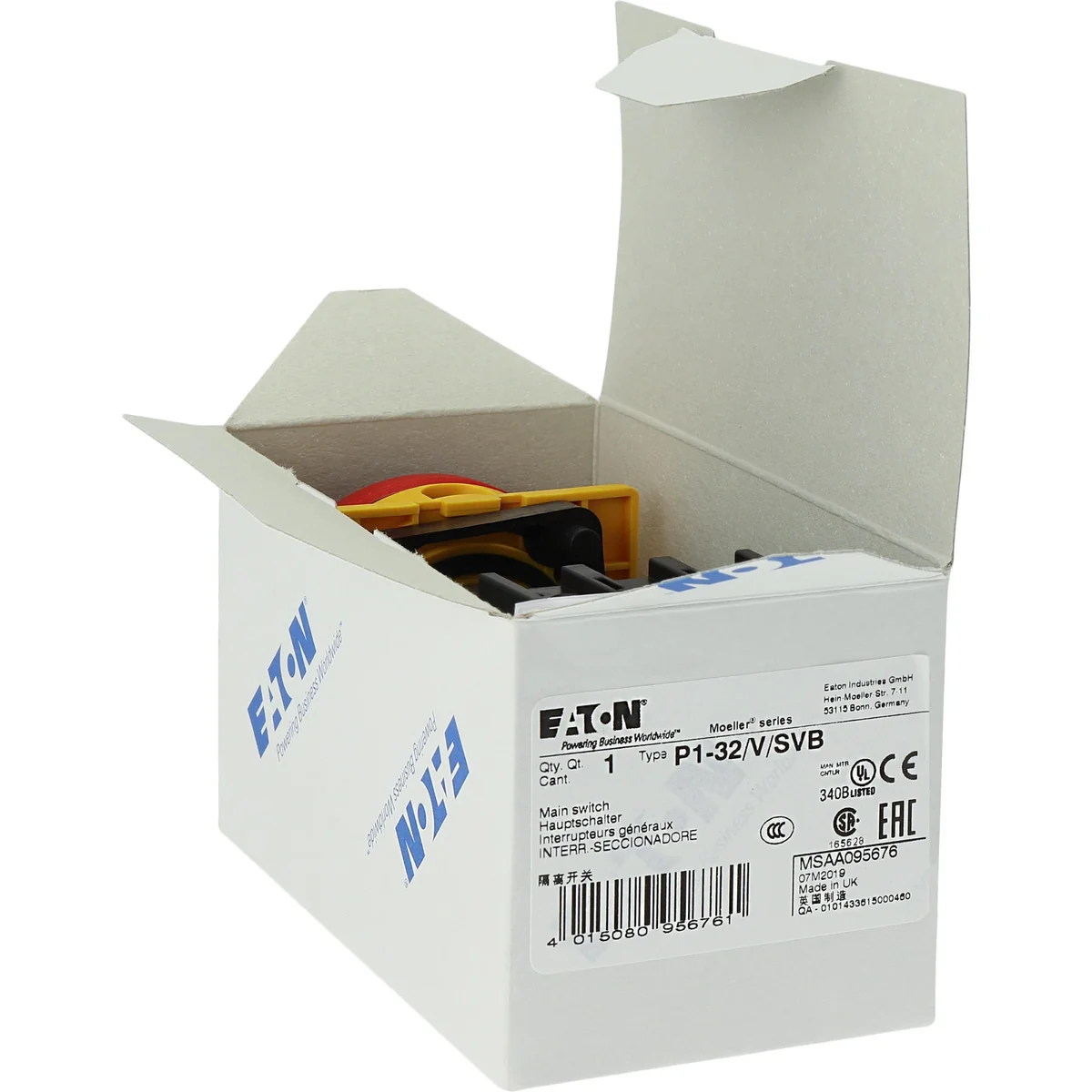 Вимикач In=32A P=15kW. З червоно-жовтою ручкою, що замикається, відповідно до IEC/EN 60204-1, VDE 0113, частина 1. Блокується в положенні 0
