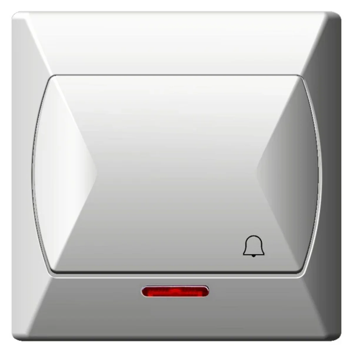 Вимикач короткозамикальний "дзвінок з підсвічуванням серії Акцент від виробника Ospel. Каталог номер ŁP-6AS/00. Білого кольору.