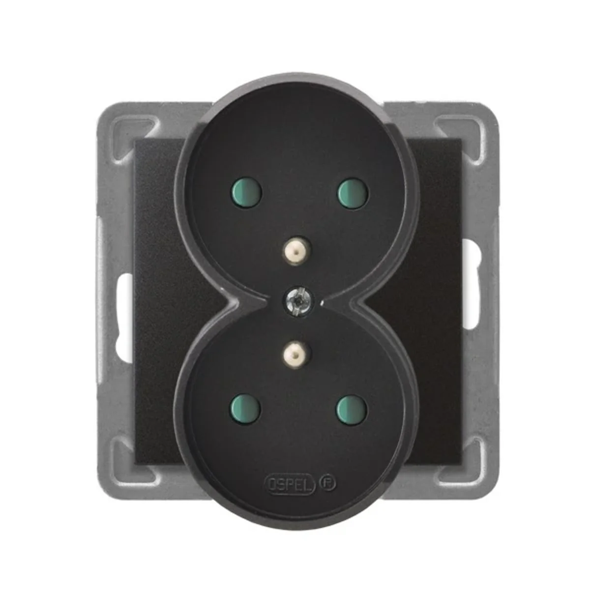Електрична розетка подвійна, заземлена, із засувками для шляхів струму.