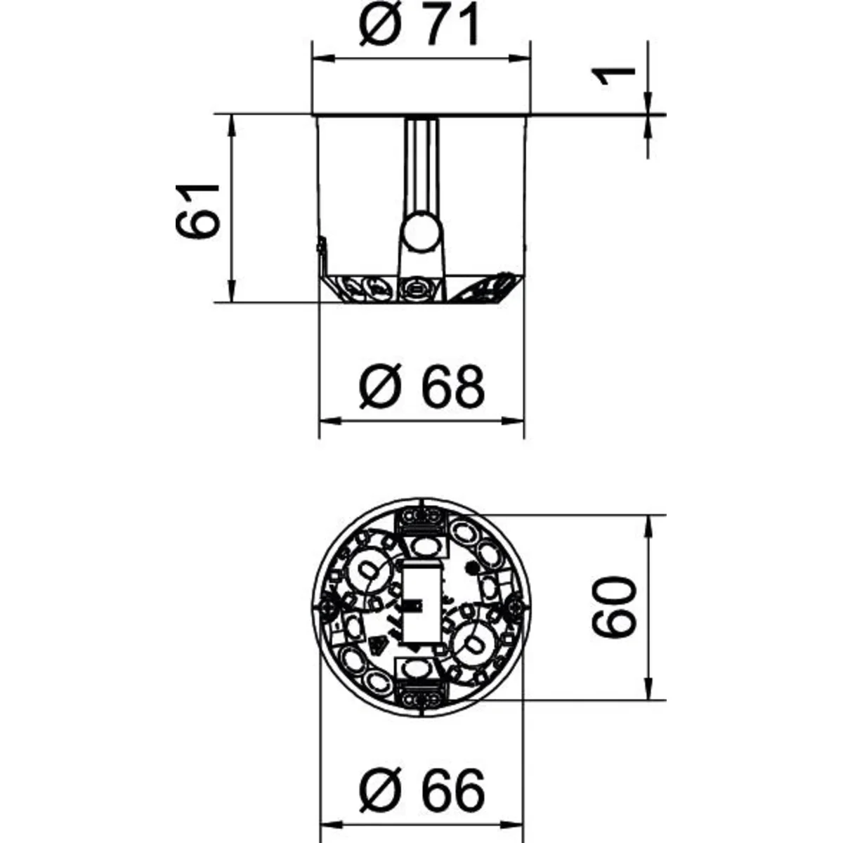 Плитна стінова коробка для використання в стінах глибиною не менше 61 мм і товщиною панелі 5 - 40 мм.