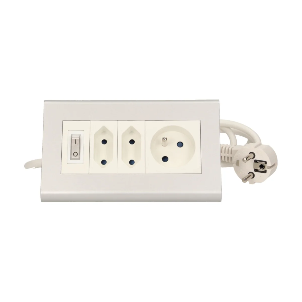 Подовжувач настільний з вимикачем 2x2,5A 2P/II, 1x16A 2P+Z срібний OR-AE-1327