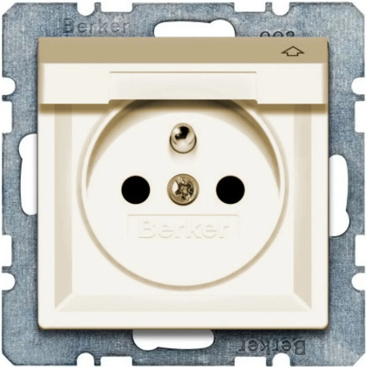Розетка із заземленням з кришкою, кремовий глянець 5365892782