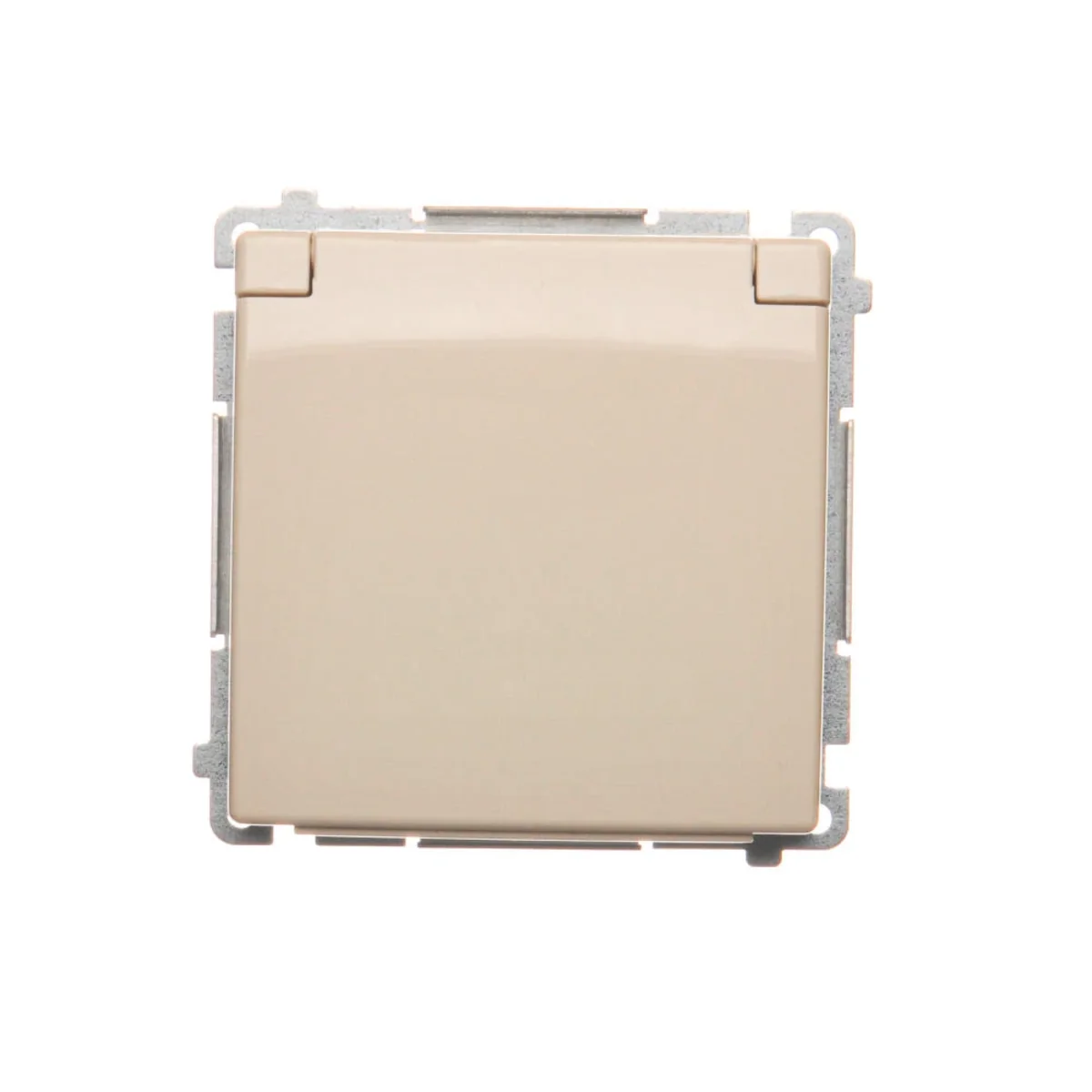 Однорозеткова розетка із заземленням, версія IP44, із засувками для шляхів струму.
