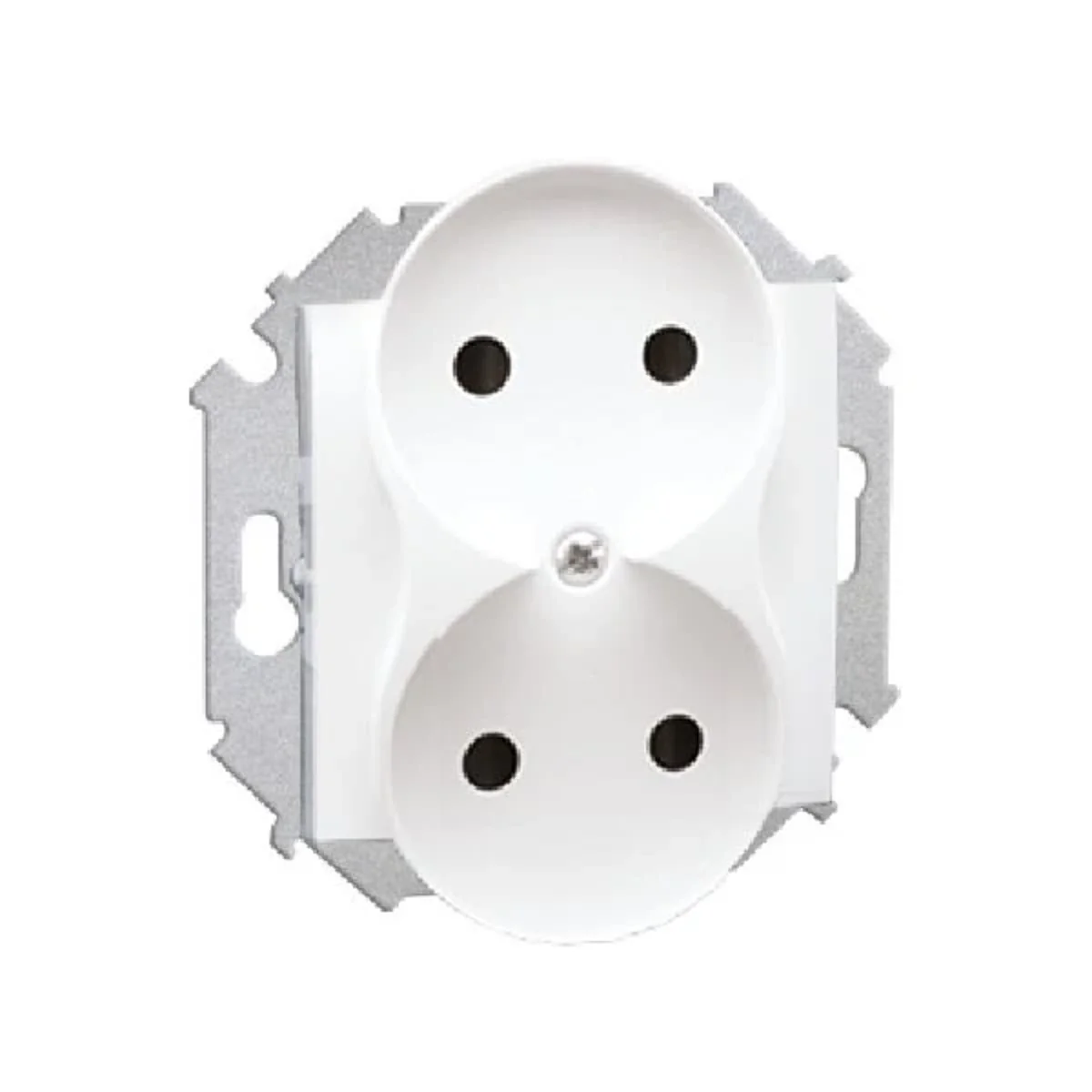 Подвійна розетка серії Simon 15 від виробника Contact Simon. Номер деталі продукту: 1591463-030. Білого кольору.
