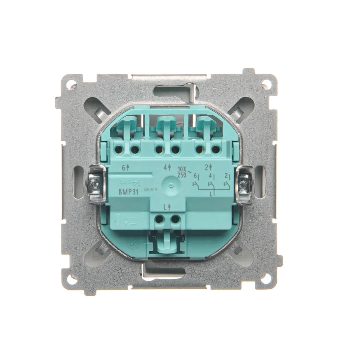 Потрійна кнопка із серії Simon Basic від виробника Contact Simon. Каталожний номер продукту: BMP31.01/21. Колір Inox, металізований.