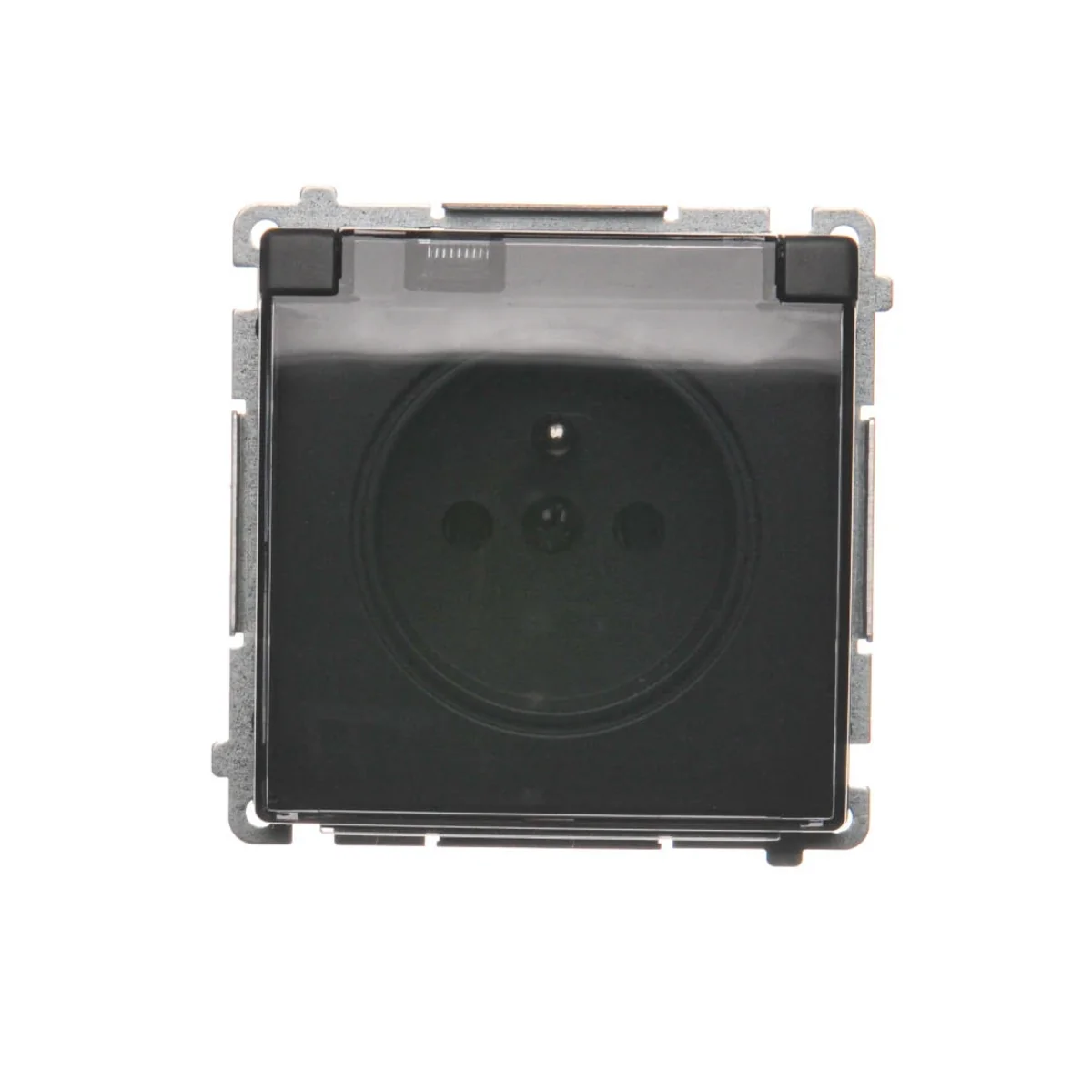 SIMON BASIC Розетка одинарна версії IP44 - прозора кришка, графіт мат, металік 16A BMGZ1B.01/28A