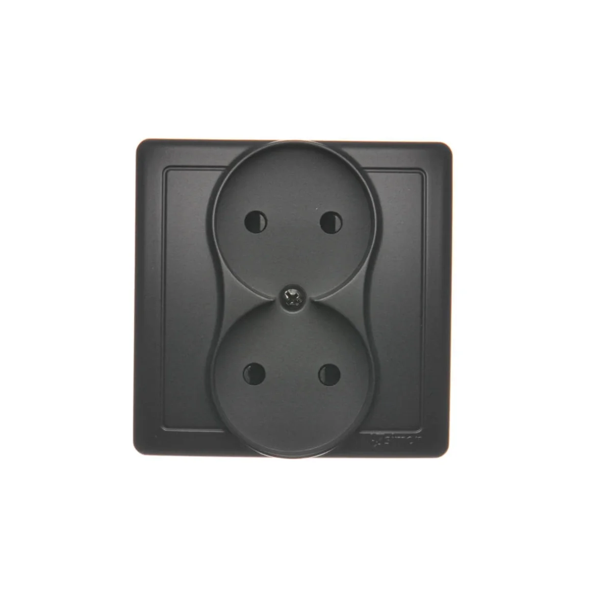 SIMON BASIC Розетка подвійна без заземлення комплектна з захистом контактів 16А 230В графіт мат BMG2Z/28