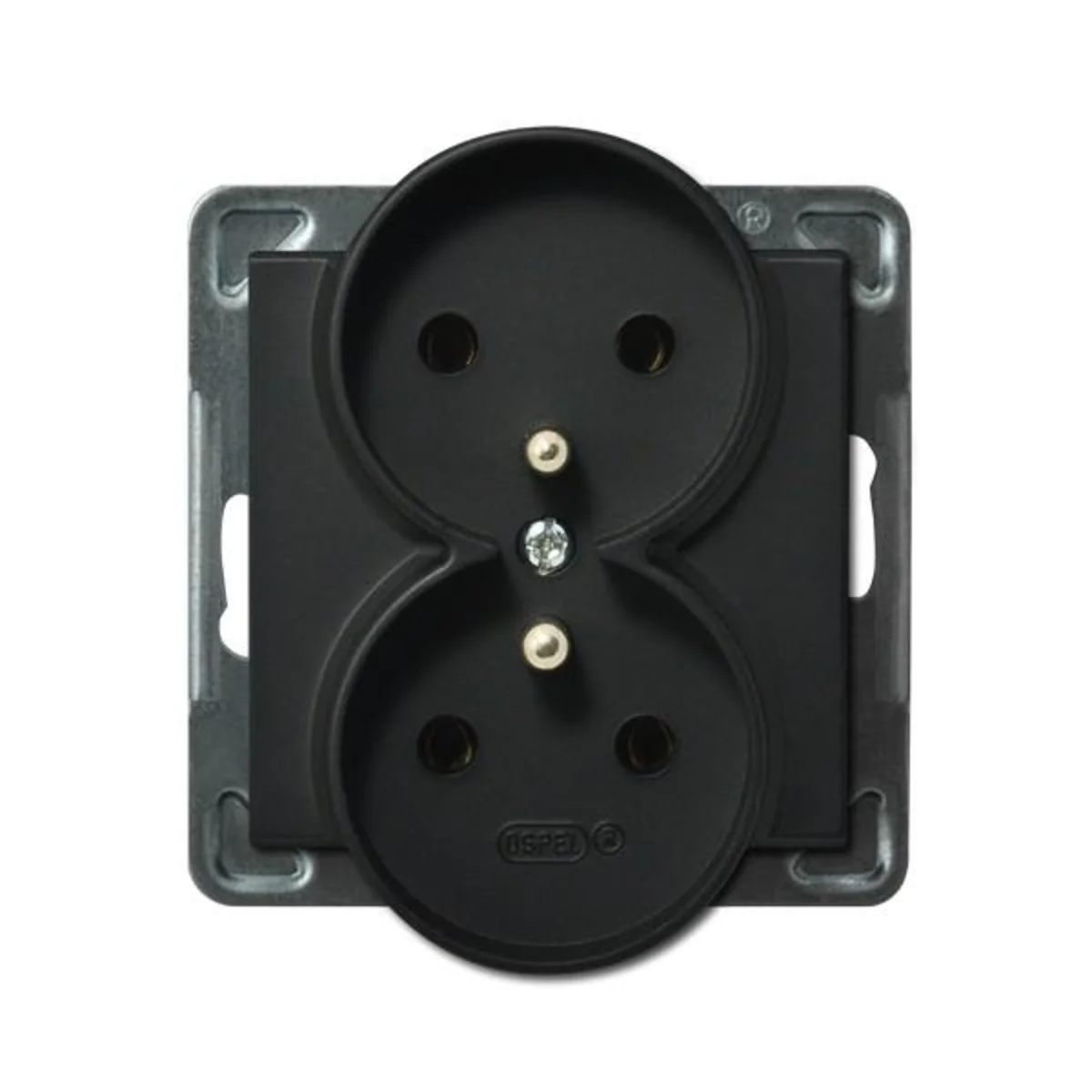 Електрична розетка подвійна, із заземленням, оснащена рамою.