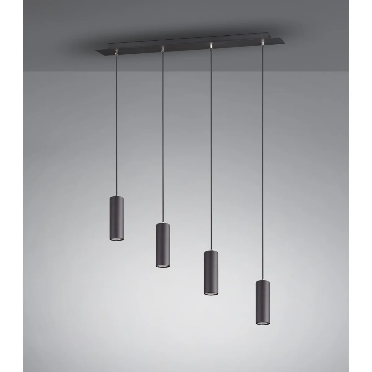Під час встановлення довжину підвіски чотирьох абажурів можна індивідуально відрегулювати до довжини 150 см. Трубки виконані в чорному матовому кольорі, тому можуть стильно доповнювати та доповнювати сучасні колірні концепції.