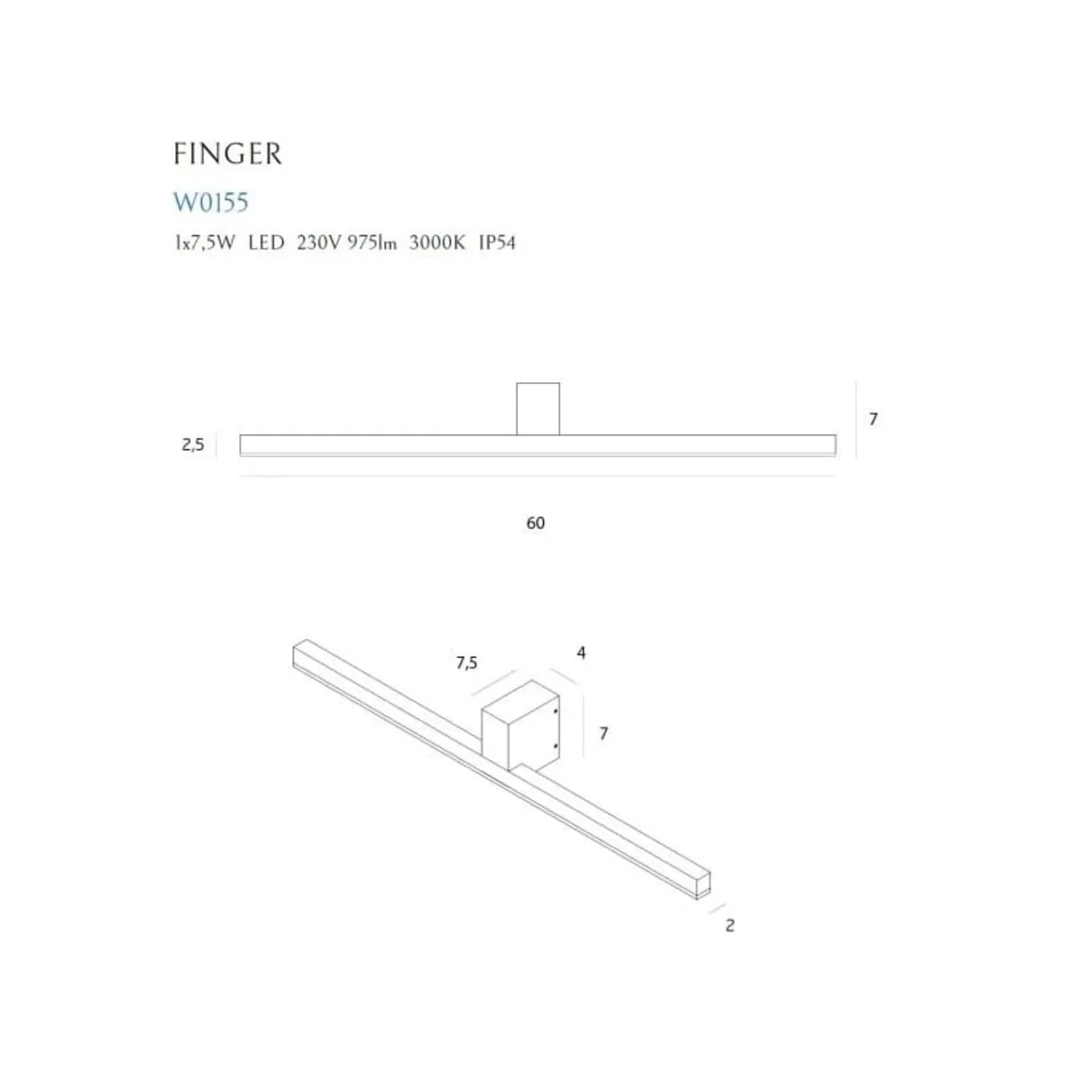 MAXLIGHT W0155 СВІТИЛЬНИК НАСТІННИЙ FINGER 60 см БІЛИЙ IP54